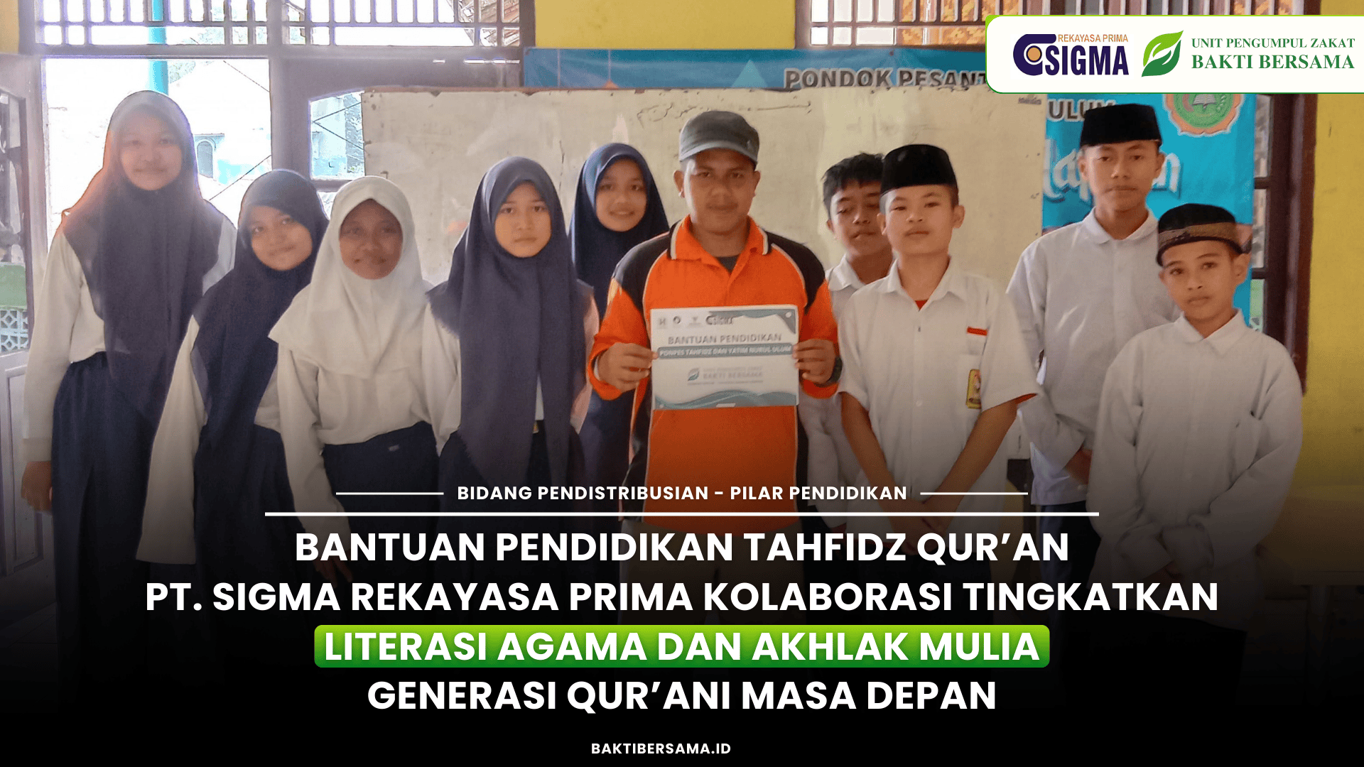 Bantuan ini disalurkan untuk mendukung kegiatan belajar mengajar serta meningkatkan literasi agama Islam, khususnya bagi para penghafal Al-Qur'an, dan untuk penerapan akhlak mulia di kalangan anak-anak yatim di masa mendatang. Program bantuan ini dirancang untuk memperkuat sinergi Corporate Social Responsibility (CSR) PT. Sigma Rekayasa Prima, yang berkolaborasi dengan UPZ Bakti Bersama, dalam rangka mendukung salah satu pilar program, yaitu pilar pendidikan, khususnya pendidikan keagamaan dan advokasi dakwah.