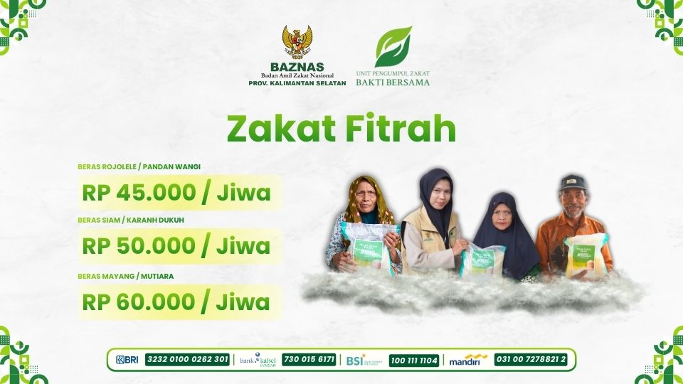 Berdasarkan Surat Pemberitahuan Kemenag Kota Banjarmasin Nomor: B-585/Kk.17.01-7/BA.03.2/02/2026 tentang Penetapan Nilai Zakat Fitrah dinilai dengan uang untuk Wilayah Kota Banjarmasin Tahun 1447 H / 2026 M adapun rincian nominal sebagai berikut: